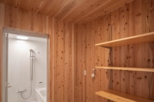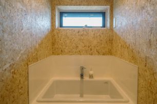 管理事務所には、利用者用のシャワーや洗面、トイレ、 共有スペースを備え、事業と暮らしが共存する建物へ再生ました。