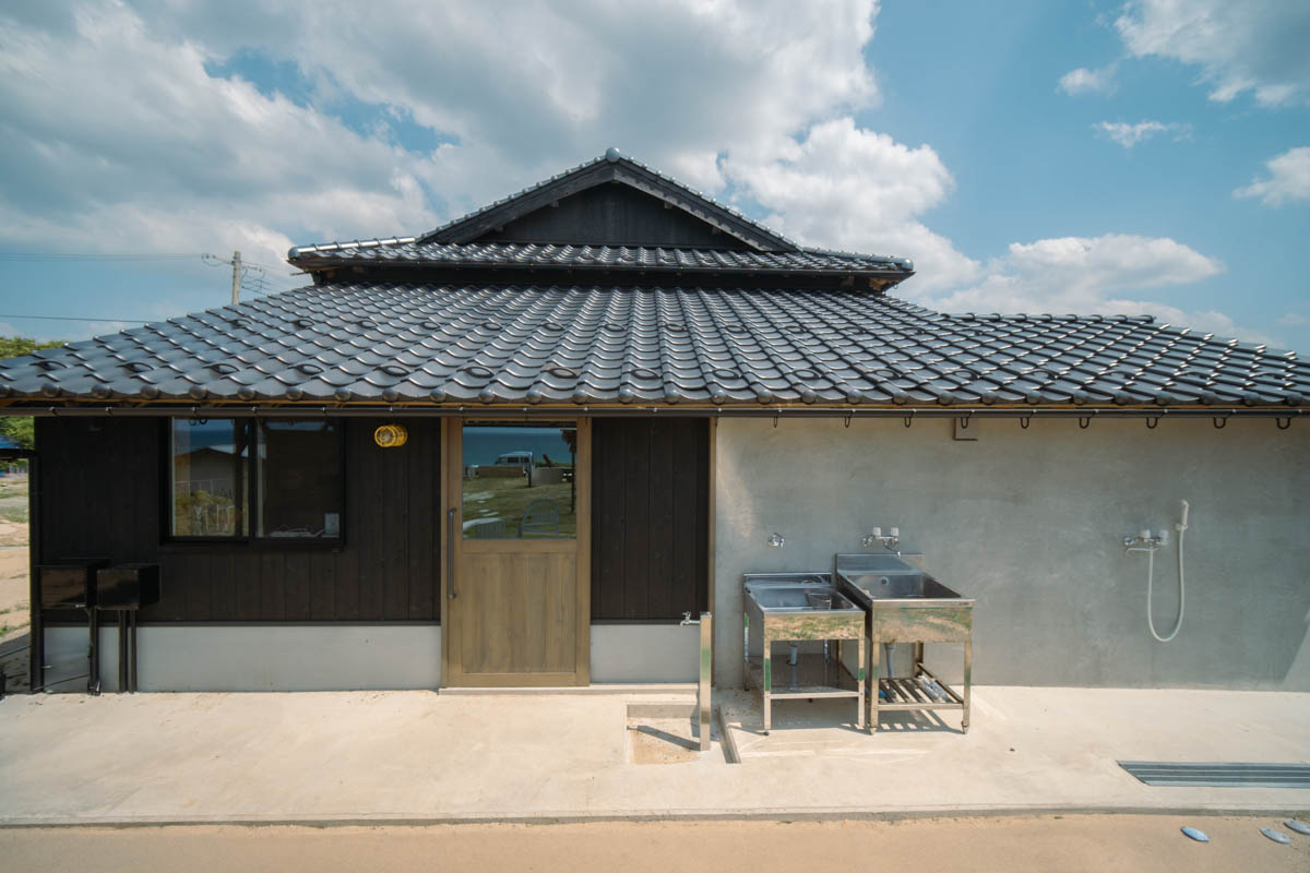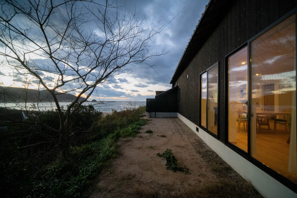 海沿いに建つ、元は事務所と数室の簡易宿所だった建物を、 バンガロー事業の管理事務所兼住宅として改修しました。