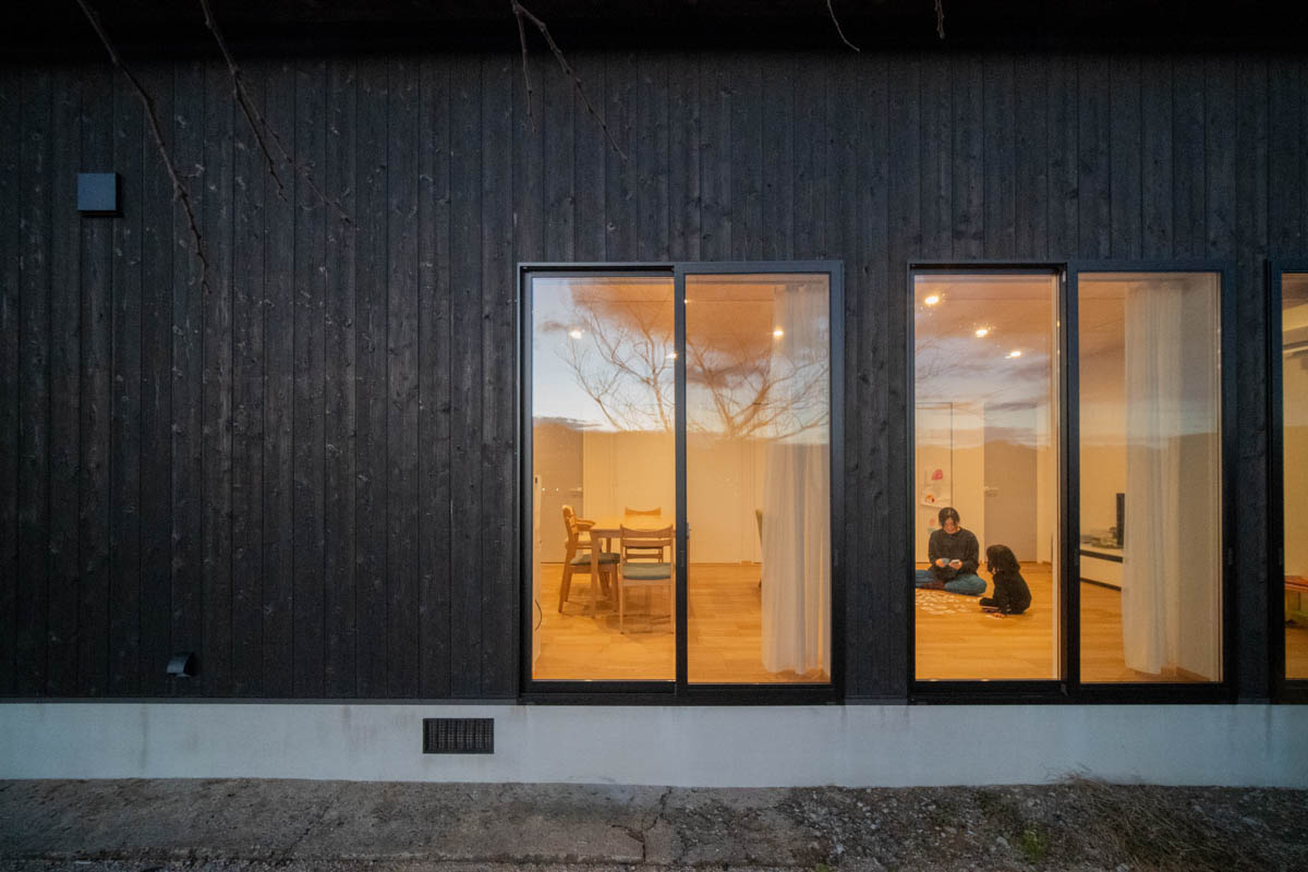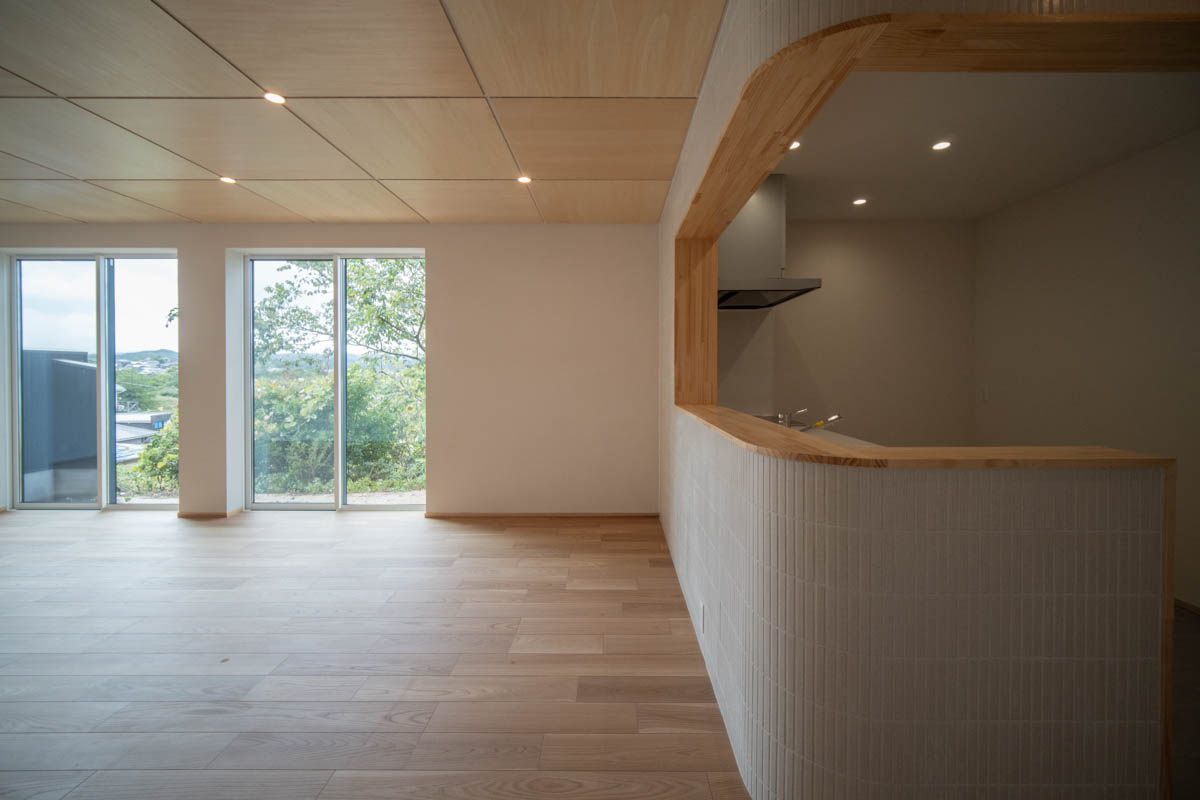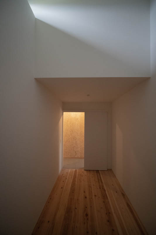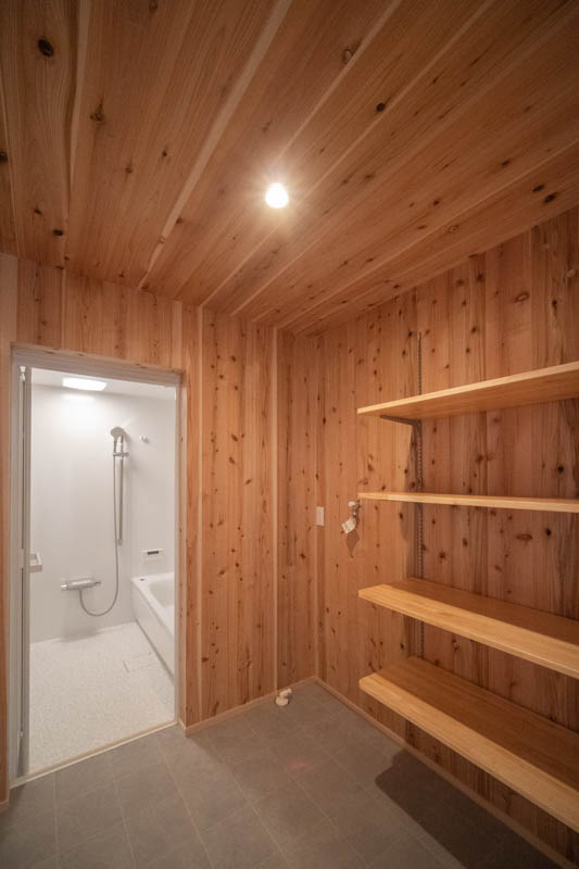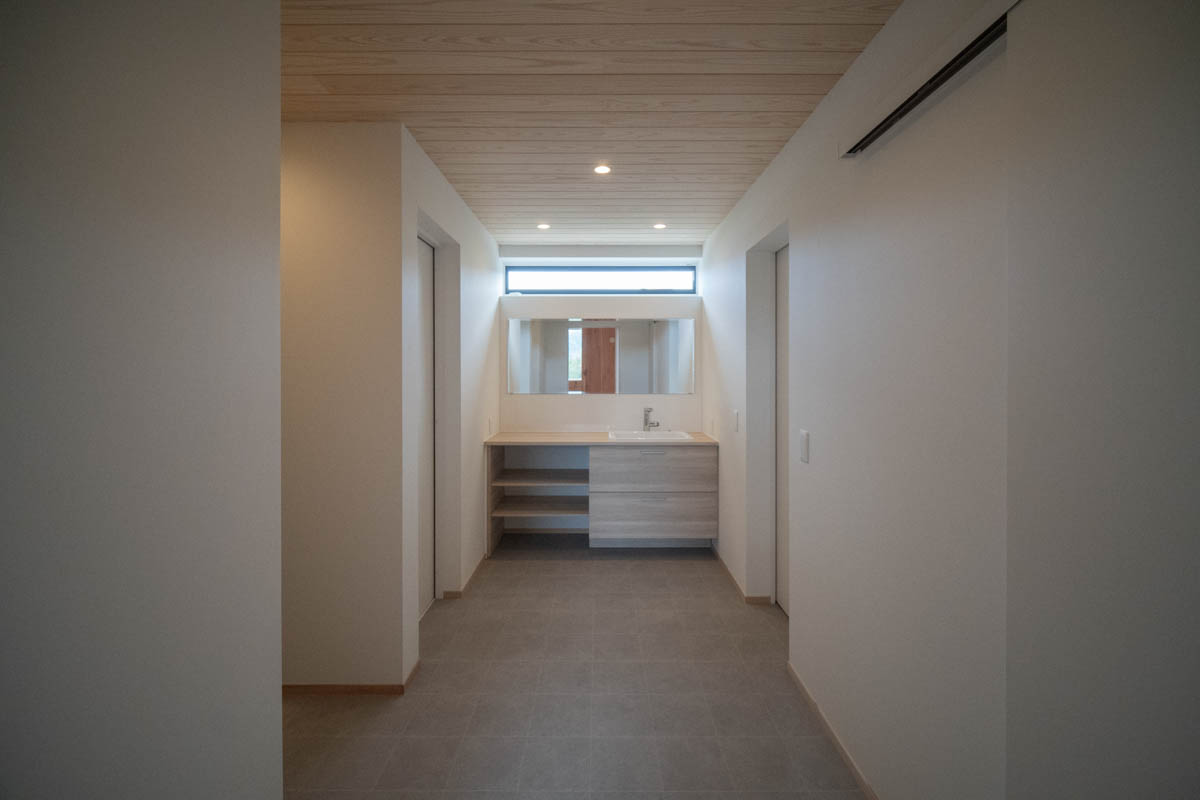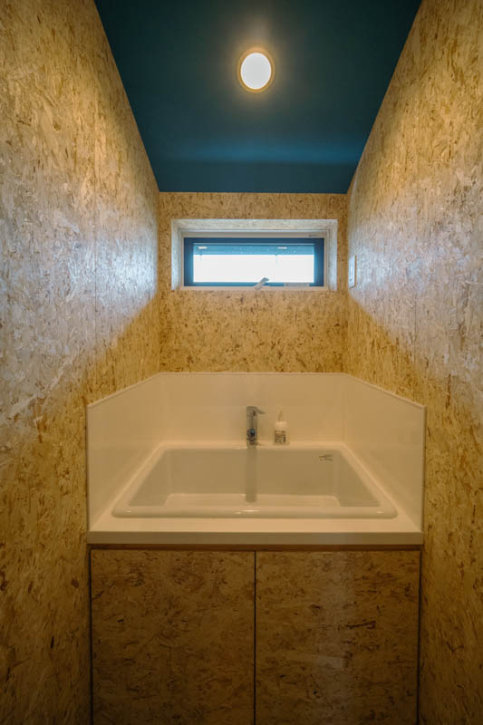 住宅部分は、シナベニヤ仕上に目地の幅や色の調整で表情をつけています。
