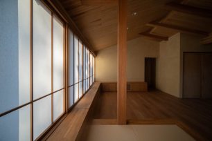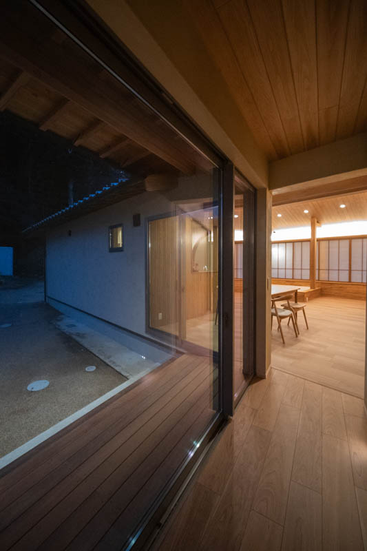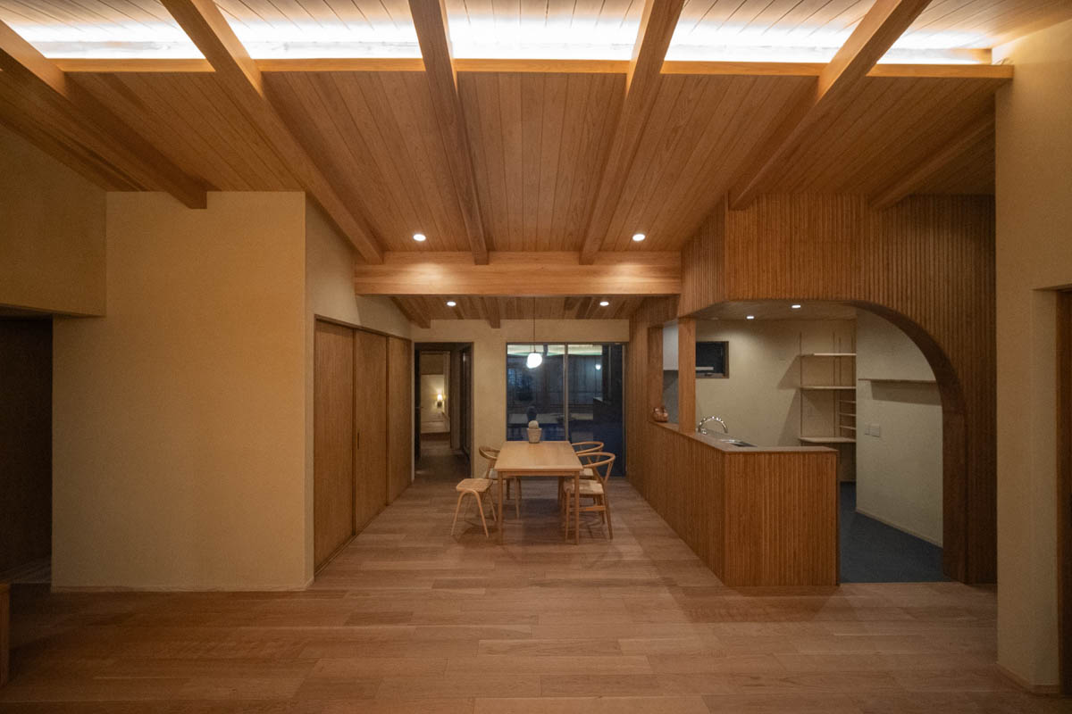 障子を介して内と外がゆるやかにつながる、ひと続きの平屋としました。